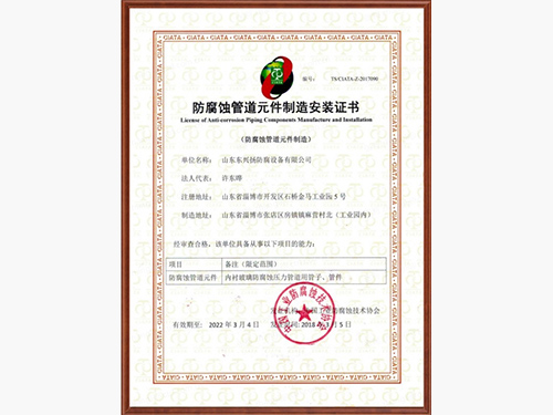 山東東興揚(yáng)(淄博五環(huán))防腐設(shè)備有限公司是專(zhuān)業(yè)的鋼襯玻璃廠(chǎng)家,鋼襯玻璃,鋼襯玻璃管道等產(chǎn)品使用壽命長(zhǎng),造價(jià)低,集開(kāi)發(fā)、設(shè)計(jì)、生產(chǎn)、經(jīng)營(yíng)于一體的專(zhuān)業(yè)性的工業(yè)防腐單位,被評(píng)選為中國(guó) 工業(yè)防腐蝕技術(shù)協(xié)會(huì)會(huì)員企業(yè)單位。